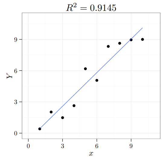 ANOVA table also allows us to easily calculate the coefficient of determination, \(R^2\). \(R^2\) is a useful tool to assess the goodness-of-fit of our linear regression models. It provides a measure for the proportion of variability in the \(Y_i\)s that can be explained by our model. The formula of \(R^2\) is given by: